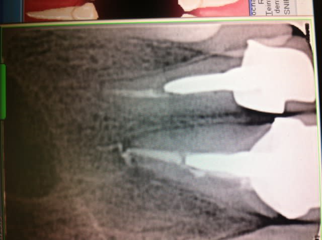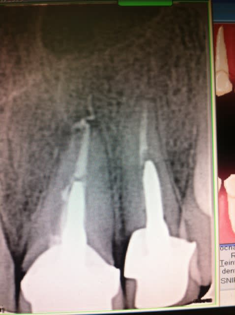 Vestibule avec 3 mm de GA, mais j'ai peur pour la corticale des deux dents. je ferai la prothèse.