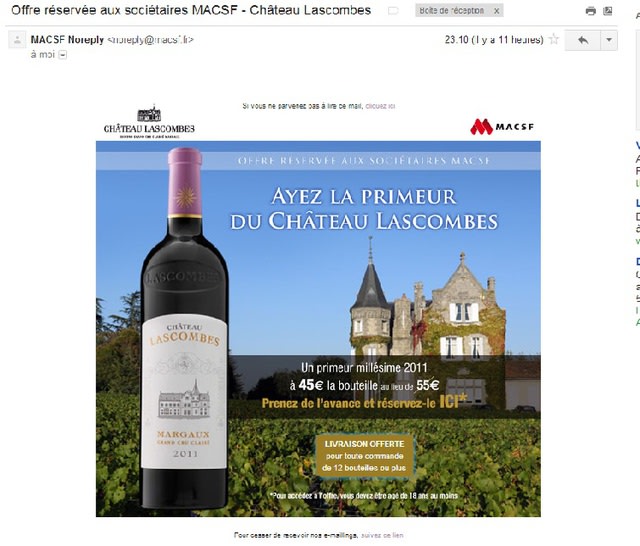 Qui s'indignait de voir une mutuelle se payer un grand cru ? Moi je retire tout ce que j'ai pu dire en tout cas ! merci macsf !