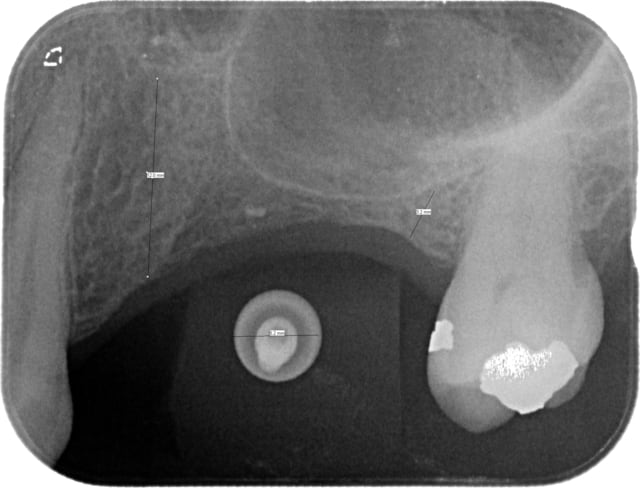L'implant en 26 doit être plus en mésial que ton trait de mesure, là où il y a le moins d'os...