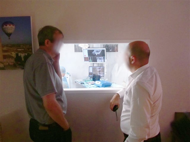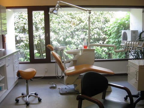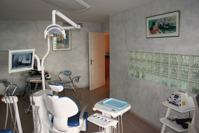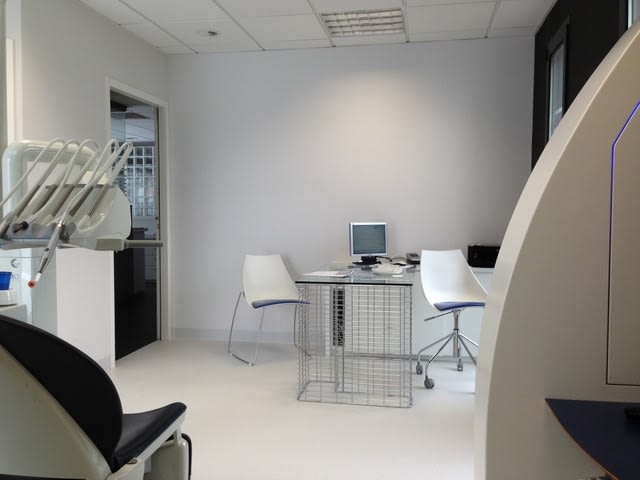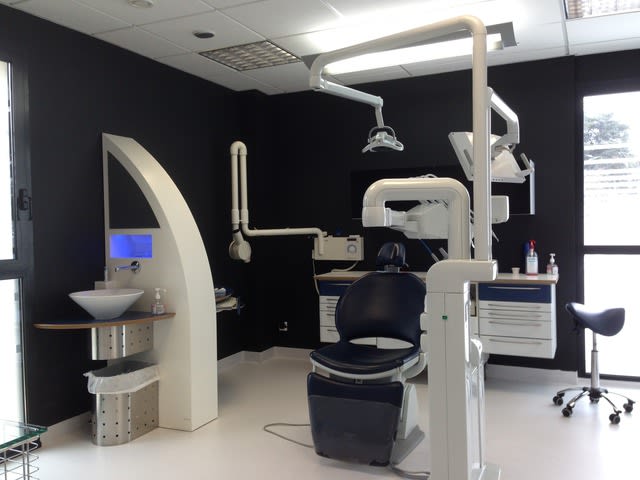 Perso j'ai été traumatisé par le cabinet de mon premier poste de collabo. C'était chez un praticien qui avait eu la polio et donc passé la moitié de sa vie dans les hôpitaux. Le cabinet : sol carrelé blanc, murs carrelés blanc jusquà 1m80 puis au dessus peinture blanc cassé, rez de chaussée qui donne sur la rue donc vitres opaques, scialytique de salle d'op de clinique rond et 70cm de diamètre.
