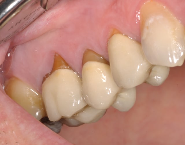 Le patient a eu un traitement paro suivi d’une contention ortho. Une option était exo 11 21 25 et bridge 15 à 25, mais 13 14 15 étaient latéro déviées cela se devine sur la photo que Noah a reprise.