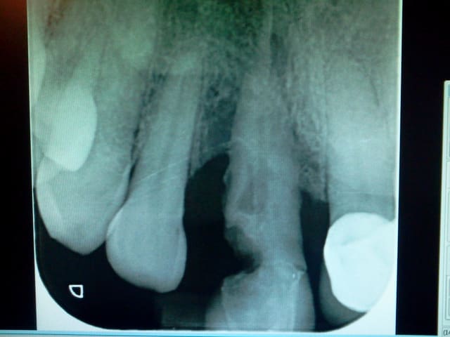 j'aurais bien aimé voir le défaut osseux/gingival dessous...