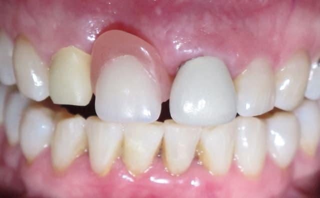 parce que quitte à faire le bridge, un bon steak de conjonctif enfouis pour redonner du volume au niveau de la dent absente, un bridge prov pendant la phase de cicat avec un ovate pontique et amha plus besoin de cette fausse gencive...