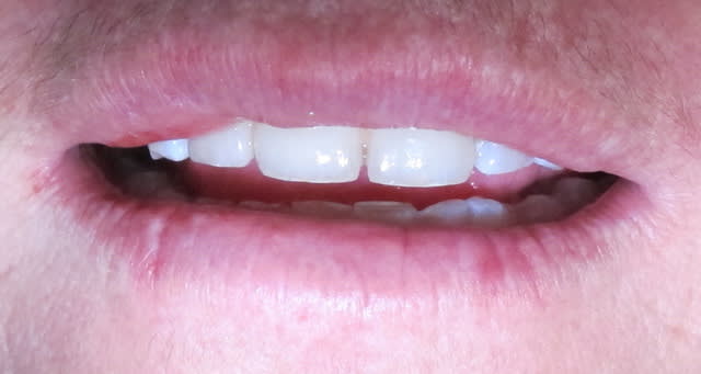 Pas de CCM car après une longue discussion avec le prothésiste, cela nous a paru être la solution la plus esthétique dans ce cas (diastèmes importants)