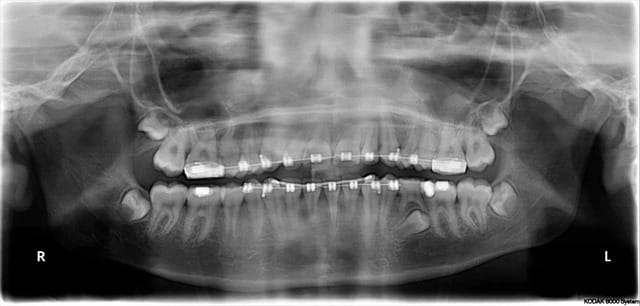 par manque de chance, elle s'est explosé la 46 et la 47 (fracture verticale) sur un noyau...extractions, greffe osseuse, implants que j'avais remarqué lors de l'examen intrabuccal du fait du profil d'émergence caractéristique des couronnes