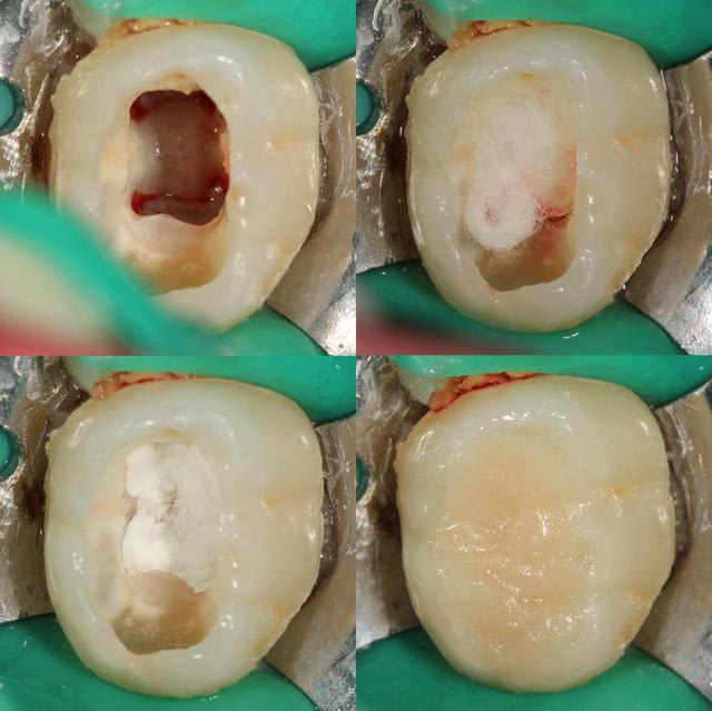 - Pour le coton : sur des pulpotomies de dent permanente immature, je désinfecte la cavité à la chlorhexidine, rince au serum physiologique puis utilise des cotons stériles. Sur des dents temporaires, de simples cotons secs non stériles, pas de désinfection : j'ai peu de complications infectieuses.