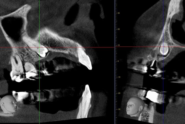 dans ce cas, c'est différent...le cône beam nous donne toutes les informations nécessaires pour savoir si c'est réalisable ou non, et là oui, pour avoir tracté un certain nombre de dents incluses, il est quasi certain que la mise en place de cette 25 ne posait aucun problème...peut être même en seulement quelques mois...