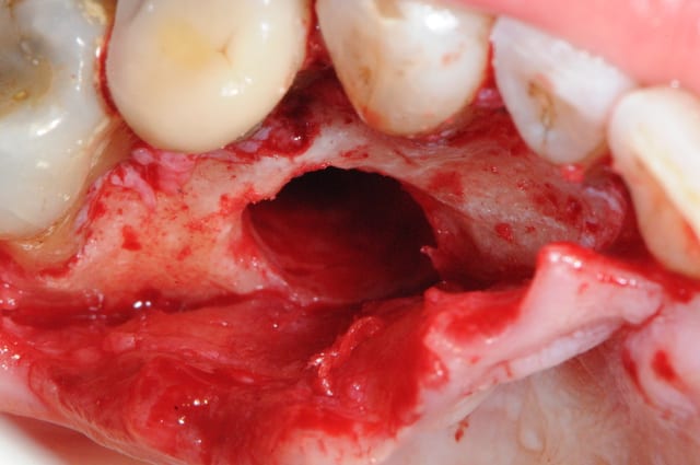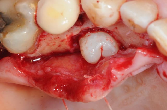 Sinon 2e option, tu t'embêtes pas, tu passes simplement à travers la 25 comme Schmuckler et Davarpanah. 20 min d'intervention entre l'avulsion de 24 + curetage du foyer et pose de l'implant et les sutures.