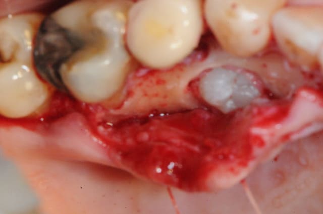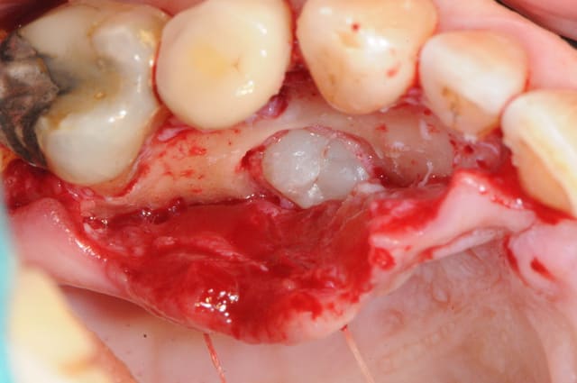 Tu as mis une collagène AT ? Selon les dernière études ça.ne sert à rien dans ce type de défaut car le bio mat tient en place tout seul et la compétition cellulaire ça serait du pipeau.