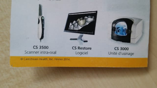 D'ailleurs le poste ici, c'est caméra pour empreinte, le système Cerec (de CEramic REConstruction) est d'abord un moyen de faire des couronnes, la woox n'est qu'un moyen.