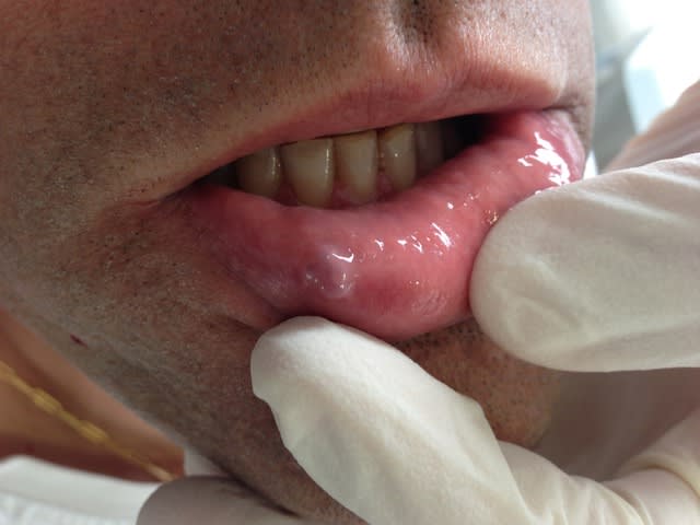 réponse de mon cher référent dermato buccal : kyste mucoide..
