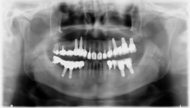 > 17. De plus, les piliers sont dévissés sur 14 et 15. Le patient n'a qu'une