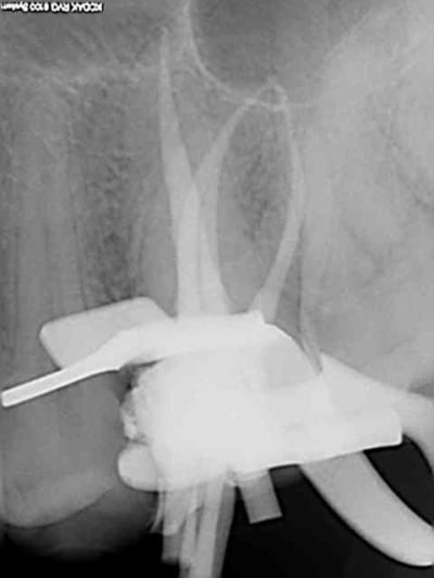 Endosolv, edta, dakin heureusement que les peintures canalaires habituelles ne sont que des peintures ca descend direct. Parfois on tombe sur du travail plus consciencieux ou le canal est bien saturé de pate c'est un peu plus dur, mais une fois passé ce bouchon de "traitement" ca roule tout seul le canal est libre.)))))