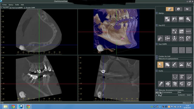 un exemple tout simple avec osirix, pour une 46 justement ou tu orientes tes axes par rapport à ta crête et ton futur implant