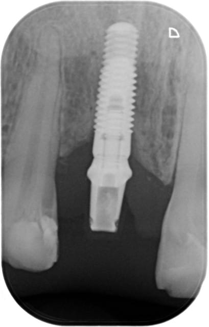 Un patient est venu voir mon associée avec cet implant en bouche depuis 3 ans au niveau de la 11. Motif de la consultation: perte de la couronne provisoire (oui, je sais, 3 ans...)