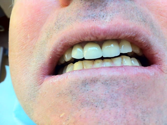 Petit bémol: il me semble préférable de laisser cette occlusion en place au moins 1 mois pour verifier l'acceptation et surtout pour laisser au systéme le temps de s'équiliber. Trés souvent, on note une amélioration sensible du fonctionnement des ATM (remaniements articulaires se mettent en place). Dans les cas sévéres je réitére l'operation plusieurs fois et il n'est pas impossible de laisser le patient finir sa reeducation sur 12 ou 18 mois avant de réaliser la réhabilitation définitive.