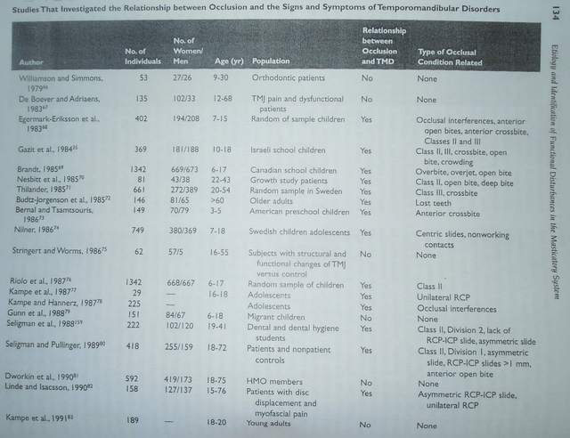 J'interviens juste sur se point, pour donner raison a isai, l'ensemble des études portant sur la relation entre trouble occlusal ( class I, II III, perte de DV, dent manquante, décalage RC/ RO), n'ont pas mis en évidence de liens directe entre trouble occlusaux et trouble ATM.