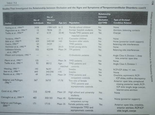 J'interviens juste sur se point, pour donner raison a isai, l'ensemble des études portant sur la relation entre trouble occlusal ( class I, II III, perte de DV, dent manquante, décalage RC/ RO), n'ont pas mis en évidence de liens directe entre trouble occlusaux et trouble ATM.
