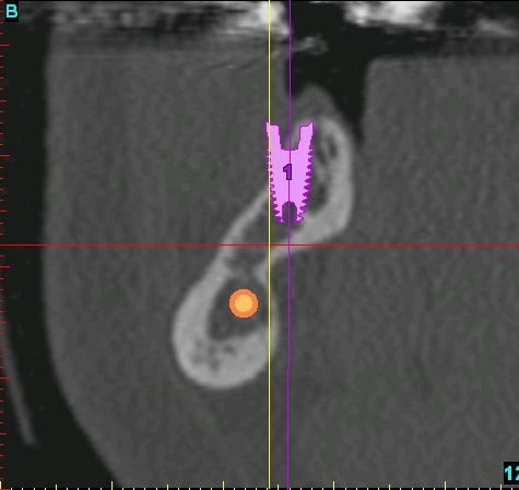 > inclinée d'env 30° par rapport à l'implant, et une plus basse entre les 2