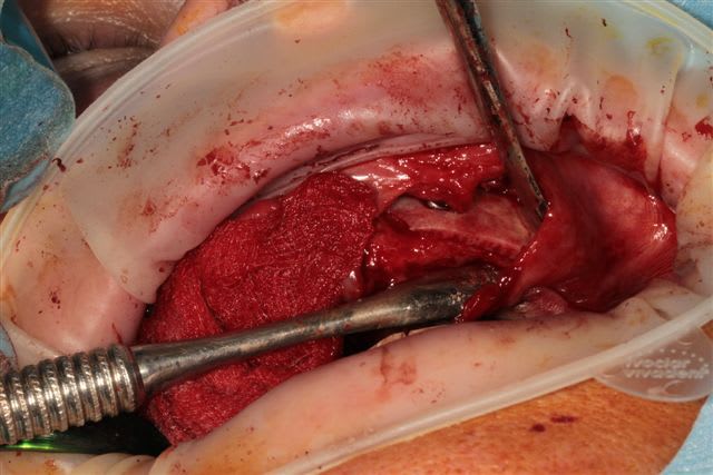 Pour une augmentation horizontale, l'incision et le décollement (" soulèvement" ) du lambeau est identique, sauf que tu insère le matériau directement en latéral, et que je préfère dans ces cas là de l'allogène ( cf post précédent)