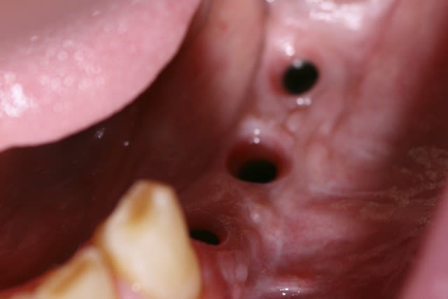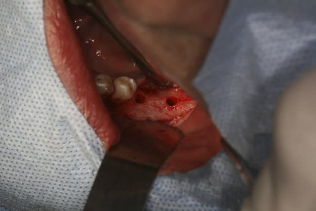 image 12 et 13: réouverture, forage et pose des implants ( les implants ont été posés par le DR A. L dans le 31)