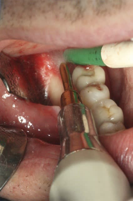 image 12 et 13: réouverture, forage et pose des implants ( les implants ont été posés par le DR A. L dans le 31)