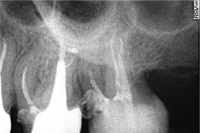 > Voilà les radios : l'endo à l'amalgame dans la chambre de mon confrère (On