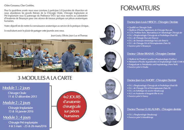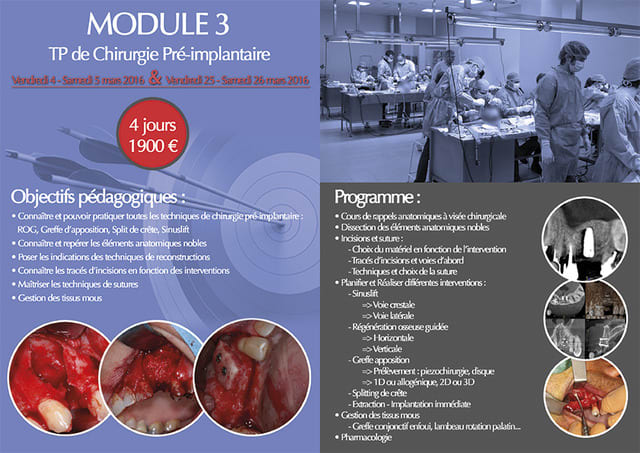 - module de chirurgie pré-implantaire : 2x2jours (14-15-28-29 mars)