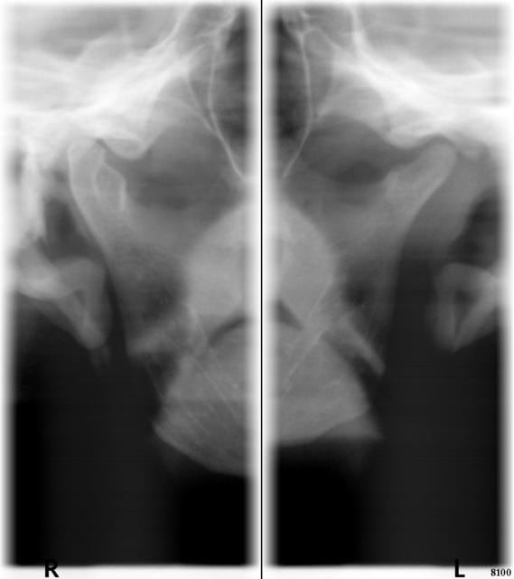Comme elle déménage ce week-end, je n'aurai plus le plaisir de tenter de nouvelles solutions. Mais je reste un peu chiffon avec cette histoire d'ATM... Je note bien une certaine asymétrie sur le cliché radio, mais j'avoue que j'ai encore pas mal de lacunes à combler en occluso, et particulièrement en lecture de radio d'ATM.