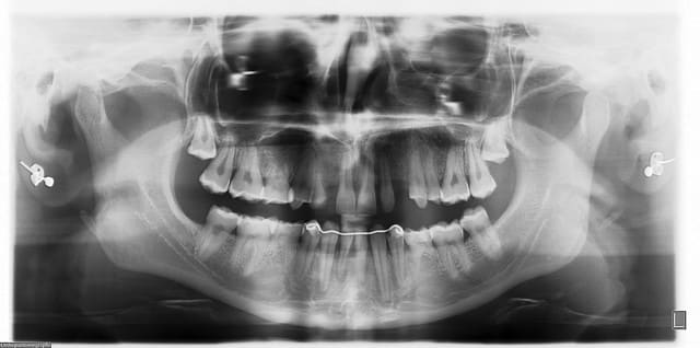 -10 agénésies (15, 13, 12, 23, 38, 35, 31, 41, 45, 48)
