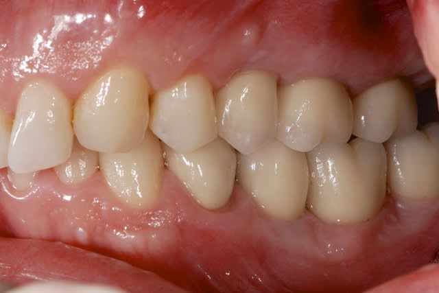 Cependant, selon moi, le post op (après élongation coronaire et réhabilitation esthétique gingivale, j'ai tapé très haut dans la G.A.), aurait difficilement supporté un matériaux moins bio compatible que la céramique, avec risque de récession gingivale accéléré.