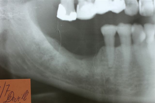 1er cas : une patiente qui perd trois implants sur 4 en zone 47 46 37 36... Elle m apporte son dentascan avec les implants en place en train de foirer