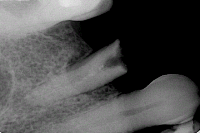 Sinon tarski, concernant la 35, c'est un artefact. L'endo est moche, mais il n'y a pas d'image apicale..