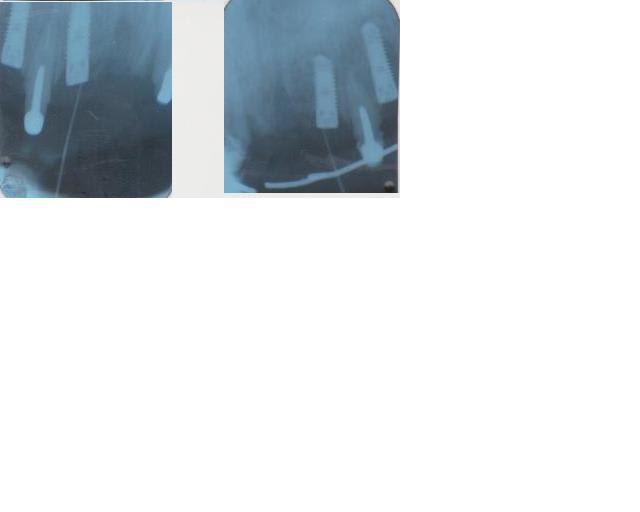 il y en a 7 qui ont l'air d'aller bien. Par contre sur celui que de la radio il y a une fistule avec un petit suintement, pas de douleurs. il y avait déjà une fistule avant que je l'opère mais après antibio, elle avait arrêté de suinter totalement. l'implant est enfoui, j'avais mis du biooss et une membrane collagène immédiatement après extraction de la racine de 12 en raison d'un effondrement de la crête vestibulaire.