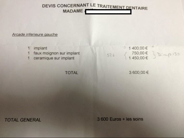 devis monégasque d'un praticien médiocre pas foutu de planter un implant droit