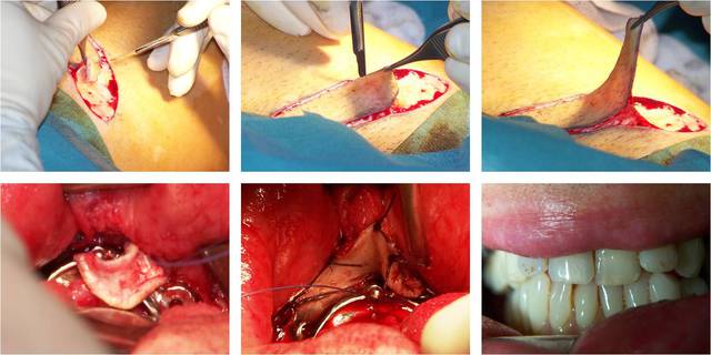 Ma spécialité est la modélisation 3D et la réalisation de dispositif sur mesure aussi mes réponses ne sont que celles d’un observateur. Le plancher peut être reconstitué de différentes façons et la palette positionnée à différent endroits. Pour la pose d’une prothèse après consolidation et en présence de tissus adipeux le chirurgien dégraisse le site et un conformateur comprime les tissus, il peut aussi être greffe un tissus conjonctif. Ces tissus sont plus sensibles aux infections qu’une gencive. Dans le second cas la palette a été placée à la base du cou. C’est un Chirurgien Dentiste qui gère la partie prothétique. Ces cas sont étudiés en collégiales. En France le chirurgien Maxillo-Facial est aussi Plasticien de la Face. Je pense que tu peux te renseigner dans les services CHU pour des informations compétente et qui sait te découvrir une vocation à y collaborer. Je joins un exemple de prélèvement de tissus sur la poitrine et positionnement sous une MCI sur greffe fibula.