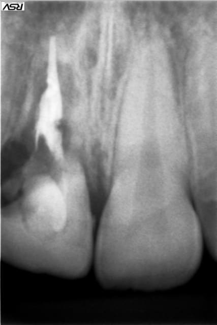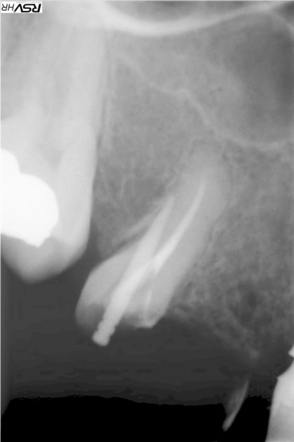 tu as mis la biodentine à la place de la gutta?ou bien tu condenses en latéral pour garder un accès pour un pivot?