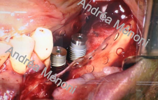 Je sais pourtant que cela se fait, je demanderais a Andréa comment il choisit de mettre ou non les implants dans le même temps que l'augmentation verticale.