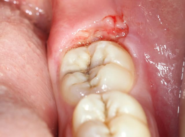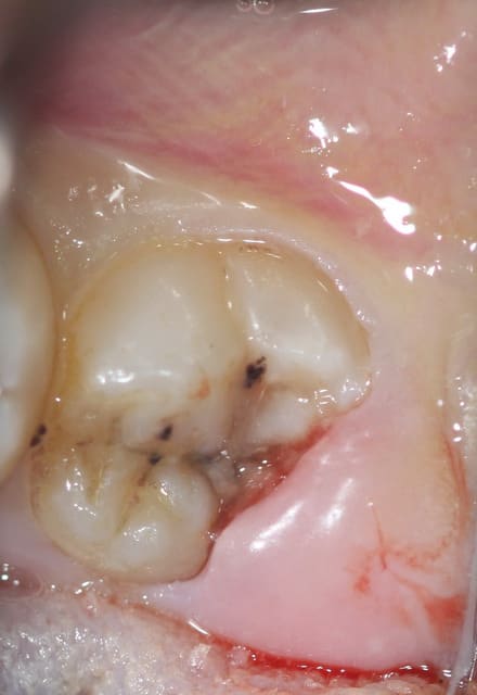 jeune patiente de 18ans avec sa 38completement dégagée de l'os mais persistance d'un capuchon muqueux régulièrement inflammatoire et douloureux... pour conserver la dent... que faire? un distal-wadge (pas sur de l'orthographe) une suppression du capuchon distal... j'en ai jamais fait... dois je procéder comme pour une élongation coronaire? ou incision en quartier d'orange???