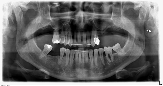 Je l'ai motivé, fais des surfacages et contentions. Le contrôle de plaque est meilleur mais reste moyen. Je joins la pano après surfacages et extractions de 25 26 27 et 17 il y a trois mois.