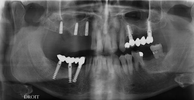 > Tu te retrouves avec un bridge implantaire, dans une zone de faible , ou moyenne densité, avec en antagoniste des implants???