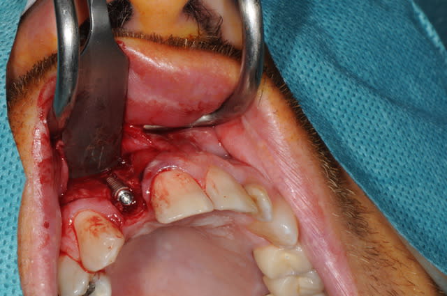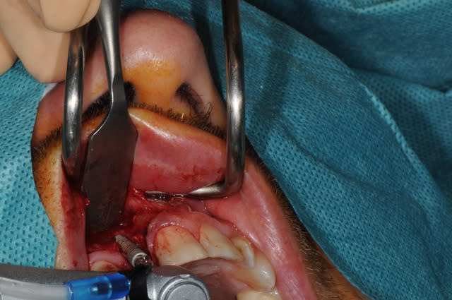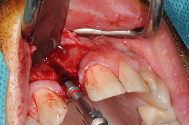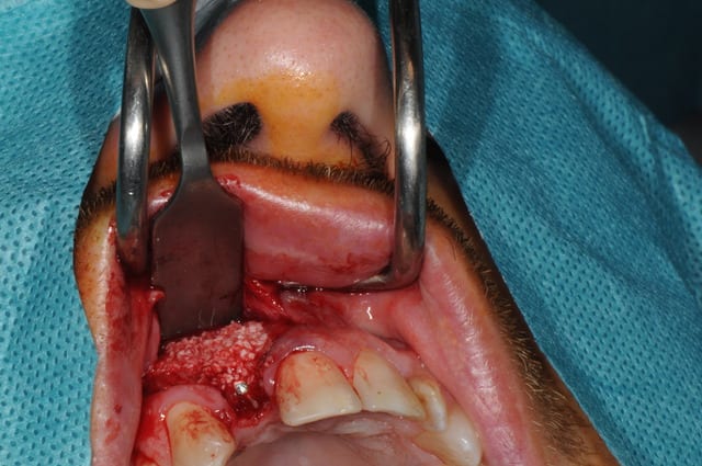 Je suis assez réservé sur la possibilité de gagner en hauteur de mur vestibulaire avec du Bio Oss. Une allogreffe en poudre me paraît plus indiquée dans ce cas