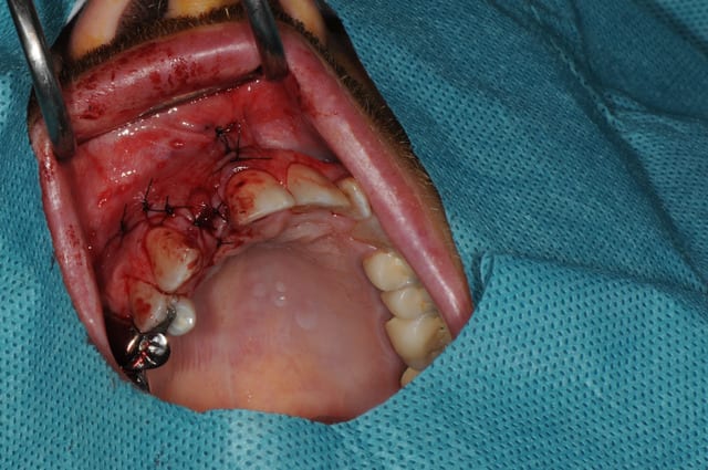 je me demande toujours comment gérer au mieux ce genre de situation. J'ai fait quelques cas en extrayant et en ré-ouvrant à une ou deux semaine pour faire une rog avec un lambeau deplacé coronairement pour fermer mais avec à chaque fois un mauvais resultat esthétique.