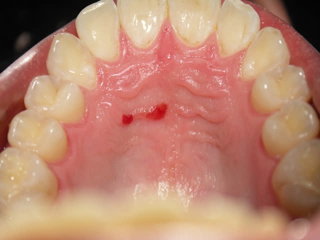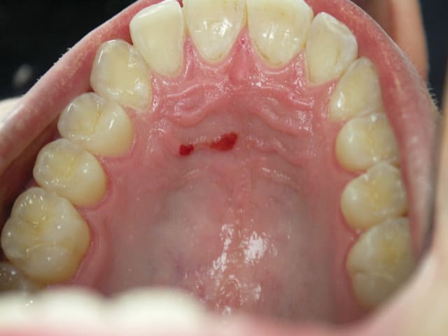 Besoin d'un avis sur cette lésion au palais d'un patient de 25 ans , sans problèmes de santé.