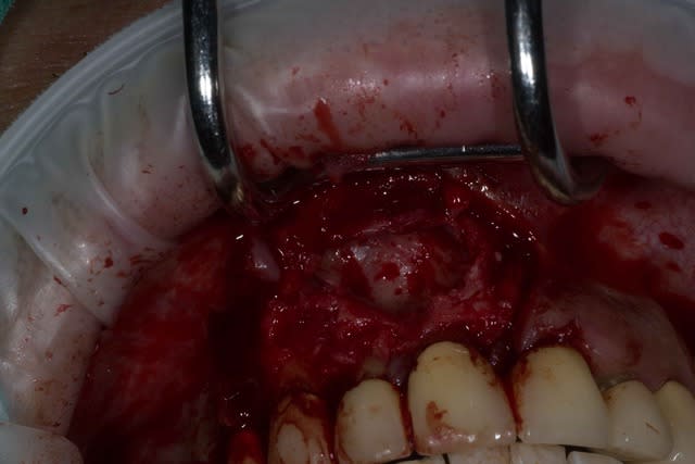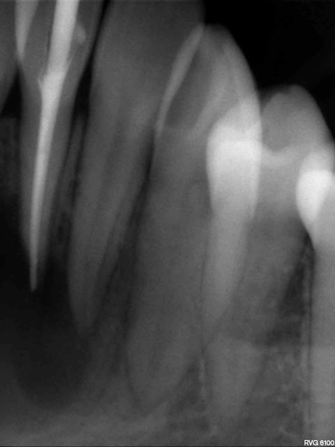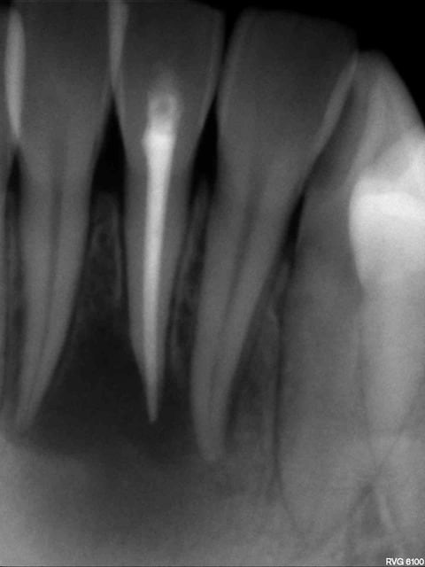 J'ai fais 3 ou 4 endos sur les incisives et un curetage chirurgical avec un comblement Bio Oss (la lésion était importante).