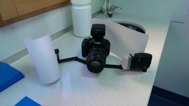 Pour les photos, j'ai un canon, avec un 100mm macro, deux flash satellites, et des diffuseurs (plateau plastique jetable découpé et mis avec des scratchs)