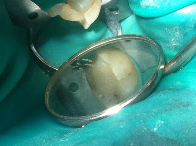 Mais je ne serais pas serein non plus tu me diras, l'angle de la fracture (je suppose) n'est pas du tout perpendiculaire ( je dirais environ 45-60° je dirais par rapport à l'axe de la dent d'après la photo)à l'axe de la dent, j'avoue que j'aurais peur mécaniquement sur une molaire. Ca me ferais flipper de coller surtout en infra gingival je pense. Mais je ne demande qu'à changer d'avis.