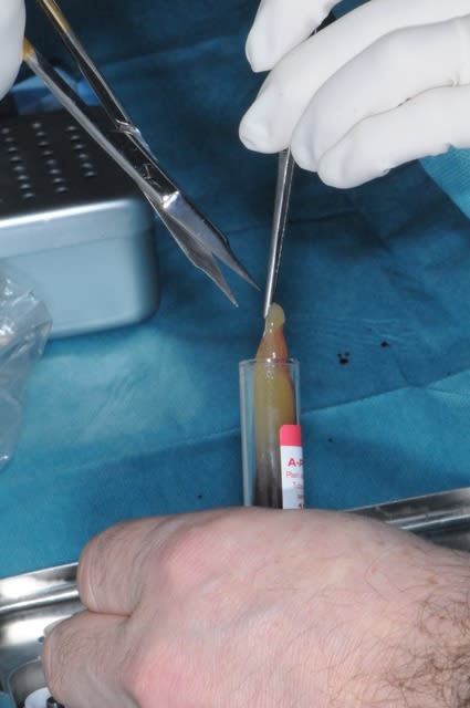 j'ai donc placé dans la connexion un teflon que j'ai laisser tremper généreusement longtemps dans la chlorexidine.