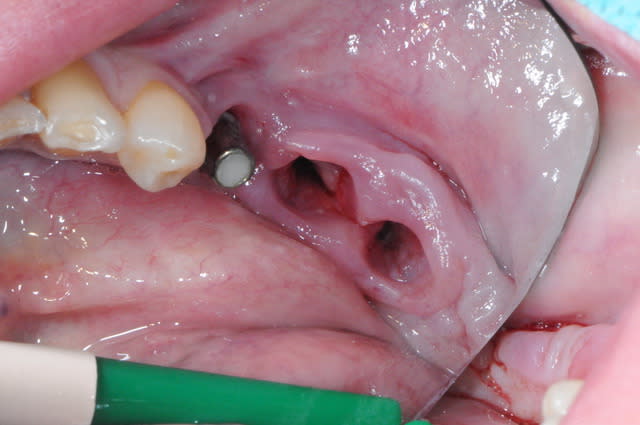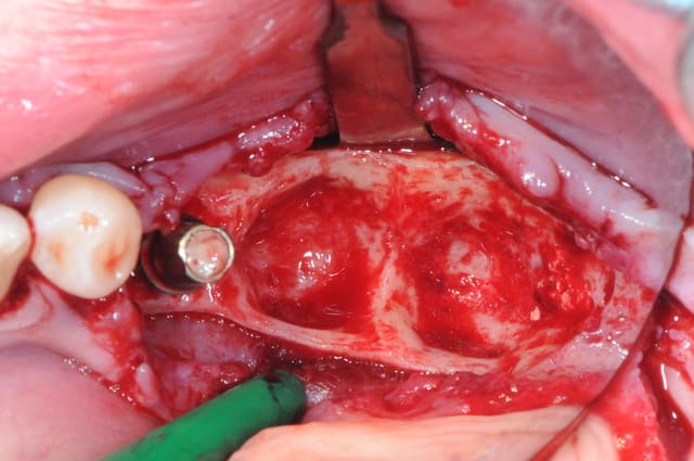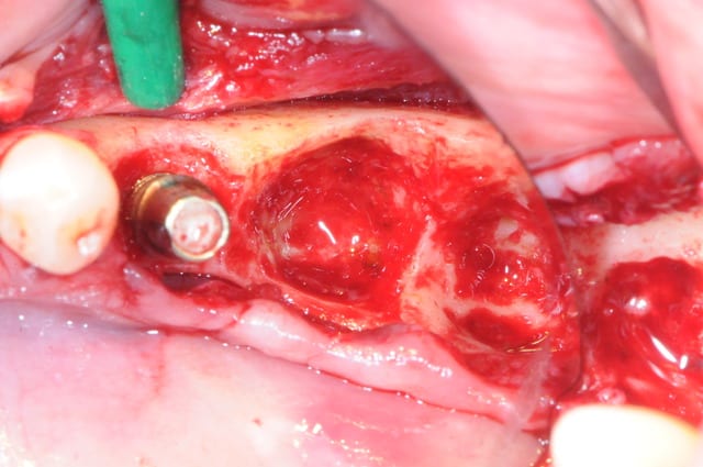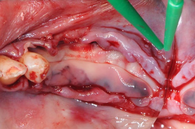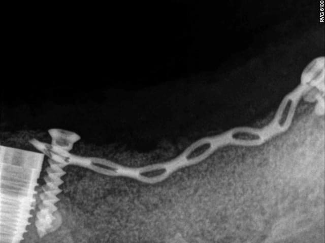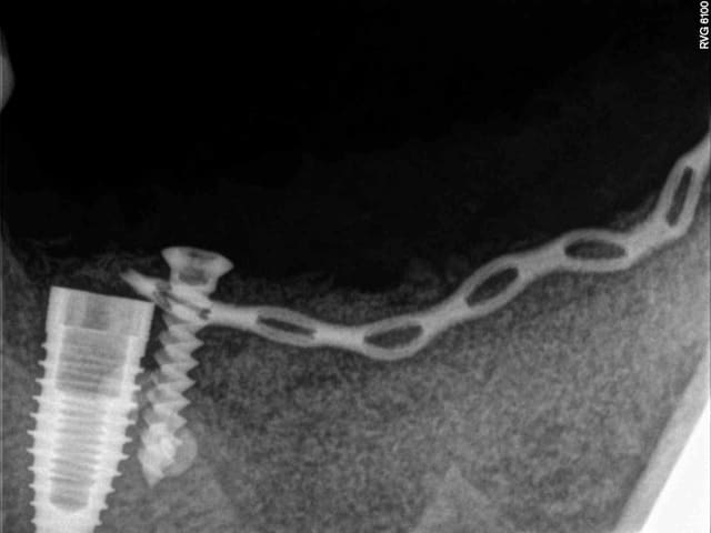 ROG avec chaine en titane comme piquet de tente aprés péri-implantite majeur.