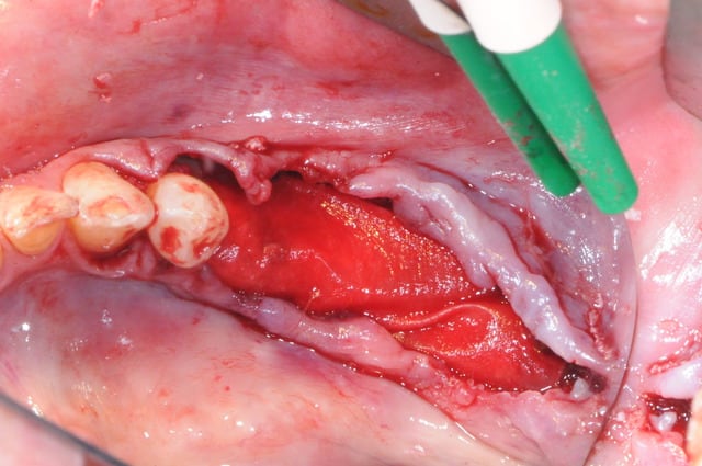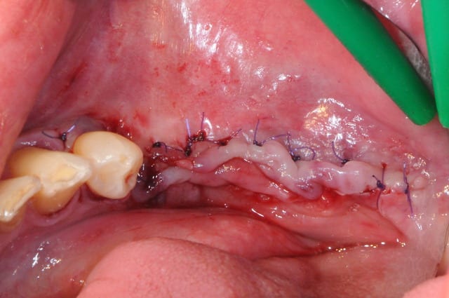 non car la présence d'un tel paquet de gencive m'a permis de fermet avec une grande sécurité le site d'intervention.